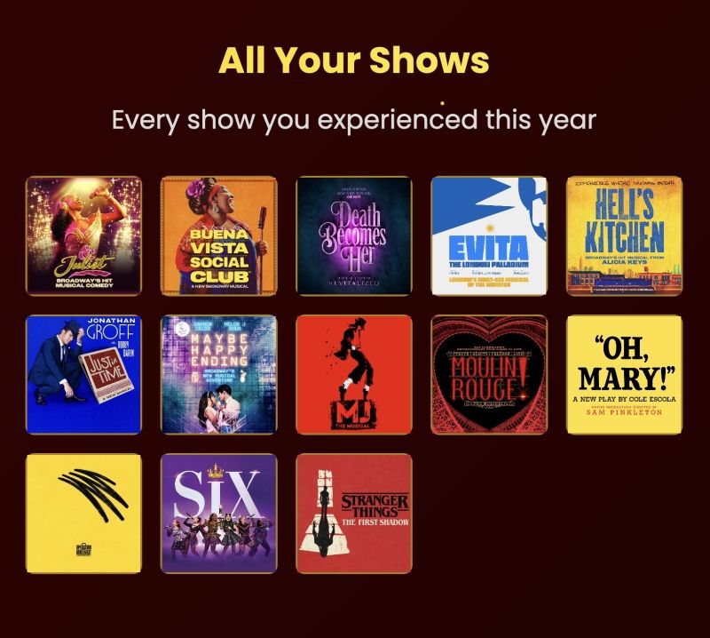 BroadwayWorld announced today that the My Shows platform has officially launched My Shows Curtain Call, a personalized year-end feature designed to celebrate each user's year in theatre. Curtain Call highlights every show attended, reviews written, ratings submitted, badges earned, and markets explored. Users will be able to share their Curtain Call results across social platforms using customized graphics.